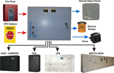 The Master Control XL is designed to provide a simple "Off the Shelf" solution for emergency power off (EPO) control requirements. The Master Control simplifies designing EPO control systems by providing individual relay outputs for up to 20 different systems in the data center. The standard design of the Master Control XL eliminates the problems found when using custom designed and site built EPO control systems. Up to 20 systems can be controlled with the Master Control's Form "C" non-powered relays.